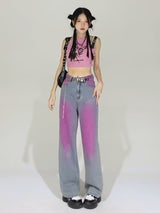 Introducing the Vintage Pink Washed Wide-Leg Denim – where street-style edge meets vintage charm. With a subtle pink wash that fades beautifully over the thighs and waist, these jeans give off an effortlessly cool, lived-in look that’s equal parts bold and chic.